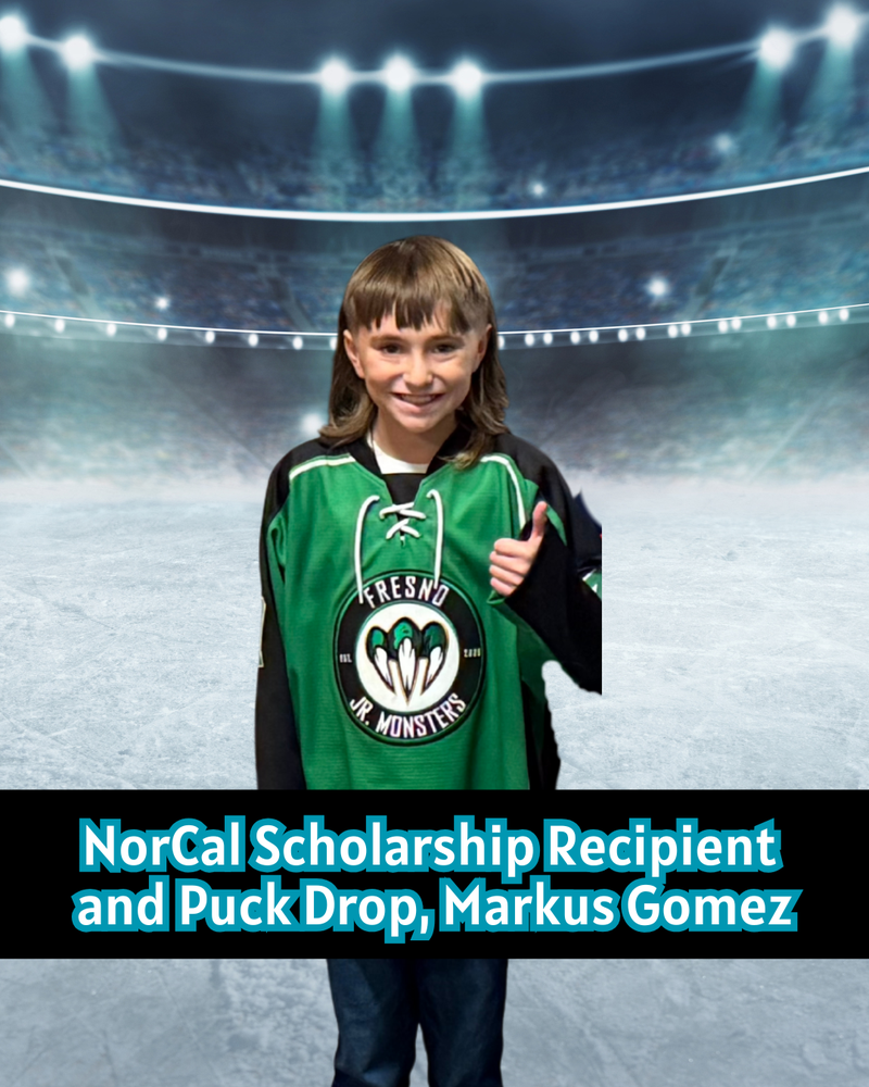 Puck Drop & Zamboni Rides by Northern California Youth Hockey Association 25–26 Scholarship Winners Presented by the San Jose Sharks. Our very own Markus Gomez with the Fresno Jr. Monsters included!