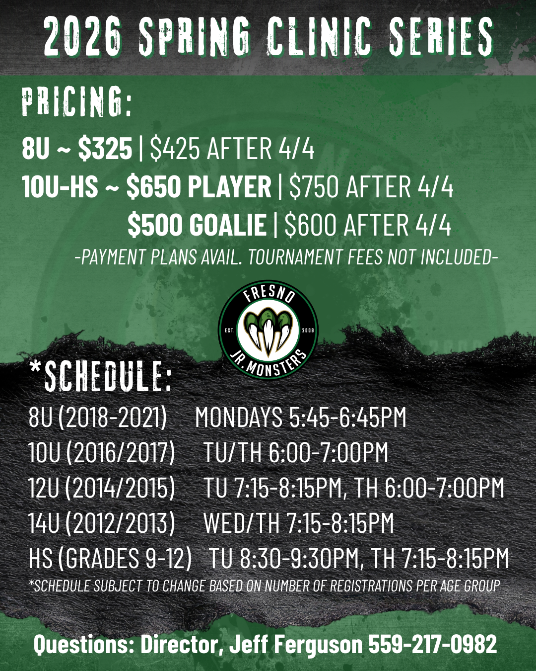 ~ $500 Goalie/$600 after April 4th